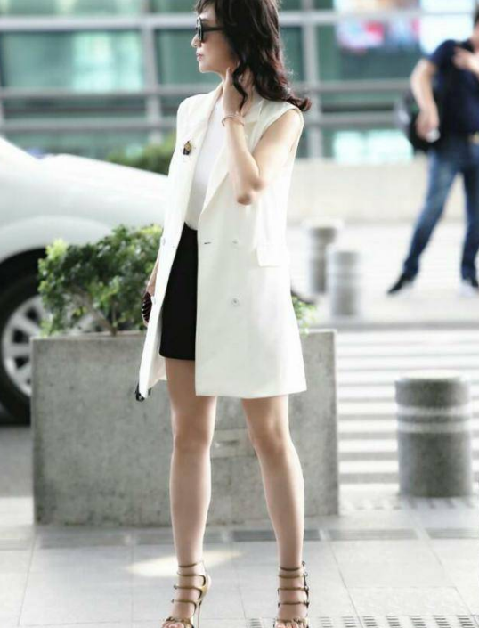 张钧蜜一直都是很低调的性格,这次她终于在高调秀大长腿了,还真是没见过这样的张钧蜜呢!黑色的中长发大气率真,黑色双排扣的西装搭配黑色紧身裤,显得整个人十分高挑呢,脚上踩的高跟鞋也真是细啊,像是踩了“两根针”,真不怕摔跤吗?