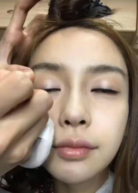 接下来,化妆正式开始,一步接一步的化妆,也是让人看的目不暇接,起初还看上去有些暗淡的皮肤,在经过化妆之后,明显有种肤色被提亮的感觉,当皮肤变好之后,五官的轮廓也是愈加明显,总的看下来,杨颖的化妆时间并不长,并且在化妆同时,头发也做得差不多了。