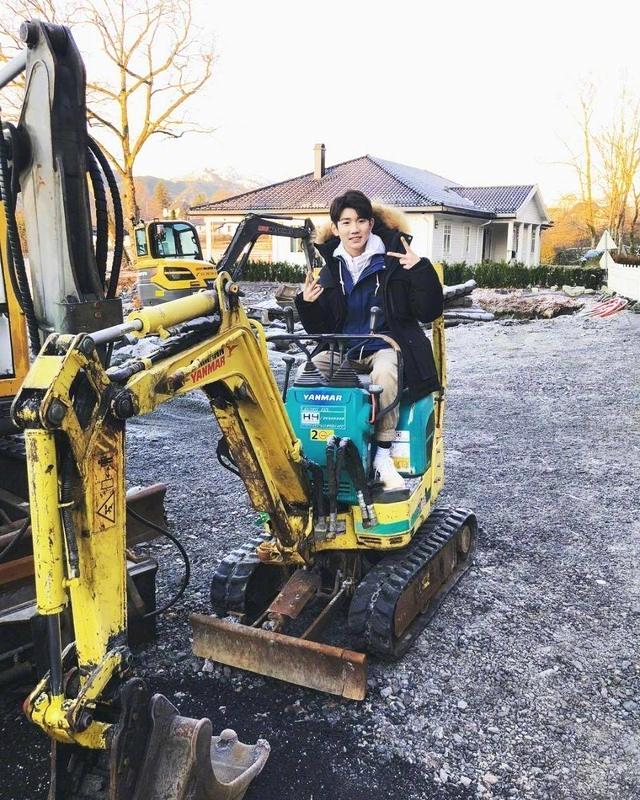 瞬间王源就变得相当接地气,坐在了挖掘机里。王源这是要学习怎么开挖掘机吗?看起来有模有样的,估计学的不错。