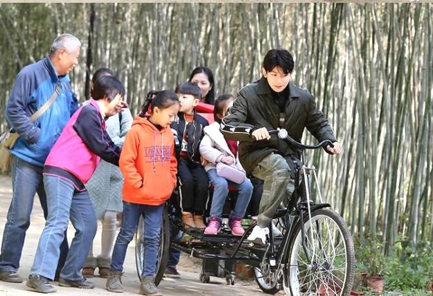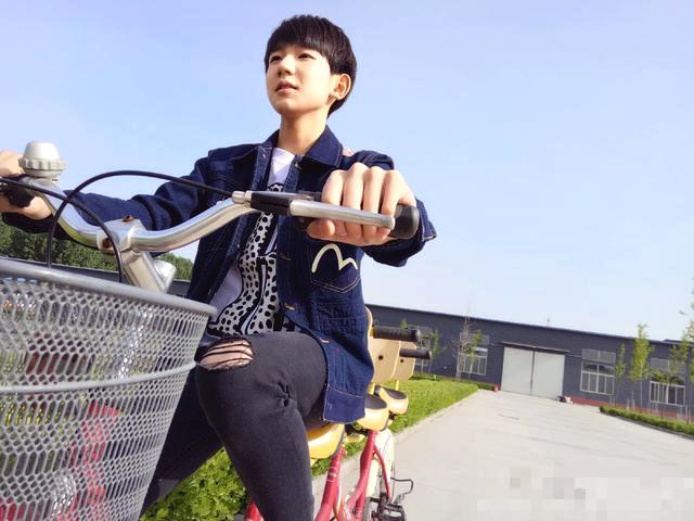开山地车的王源就有点酷了,和上图中的风格完全不一样。王源果然是个运动少年,什么交通工具都能hold住。