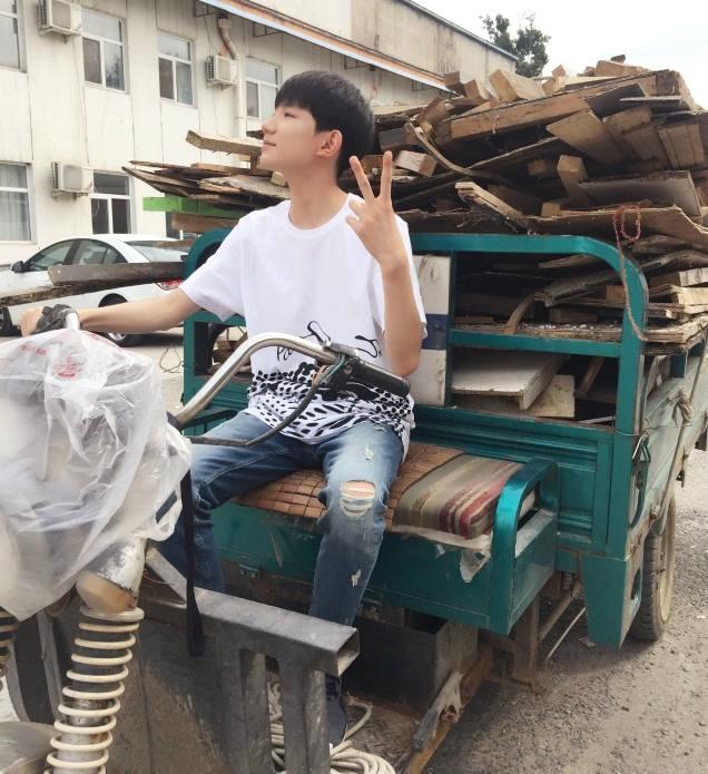 开起三轮车的王源开心的比着一个“耶”,一脸傲娇。学会开三轮车,估计王源感到很骄傲吧。