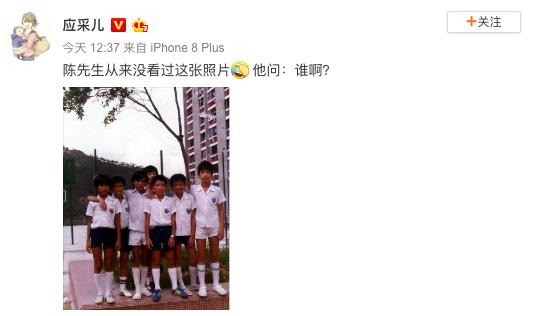 应采儿还搞笑配文称,自己拿出来了照片,结果老公从来没有看过这张照片,竟然还问是谁,网友纷纷留言:“最右边是春哥吗”,“大长腿啊,腿型真好”,“很帅”,“从小就有大哥气质了”。