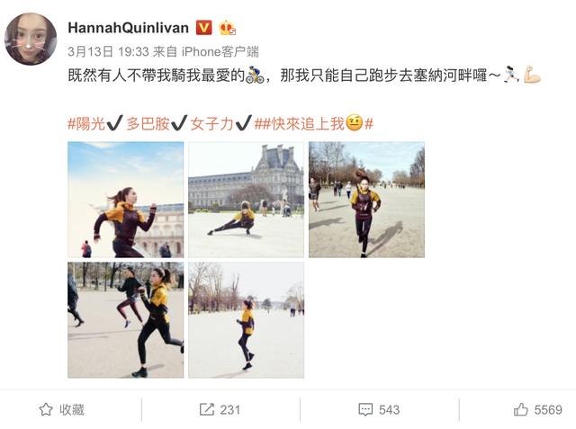 晒了5张运动跑步照的昆凌,工作状态挺好,为品牌打CALL的同时,又顺便撒了把老糖:“既然有人不带我骑我最爱的自行车,那我只能自己跑步去塞纳河畔”,这是怪周董不陪她骑自行车呢