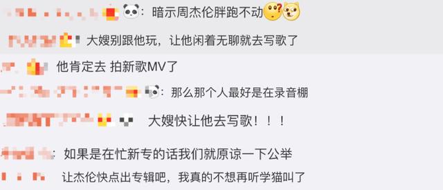所以,就有粉丝跑到昆凌评论区催促:大嫂别跟他玩,让他闲着无聊就去写歌;大嫂快让他去写歌;如果是在忙新专辑的话,我们就原谅一下公举。杰伦网友们的催歌快递,你收到了吗?