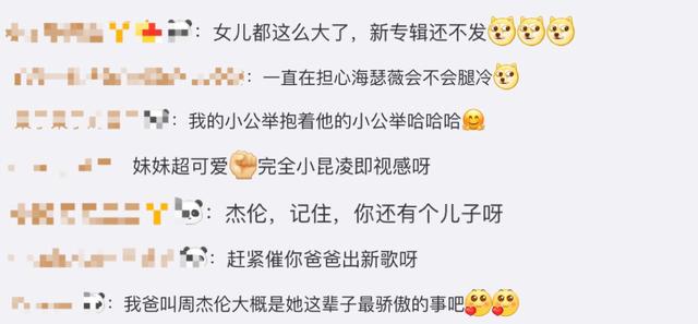 看到父女两的浪漫时刻,粉丝羡慕小周周这辈子最骄傲的是,老爸叫周杰伦。还忍不住催促:女儿都这么大了,新专辑还不发?赶紧催你爸爸出新歌呀。