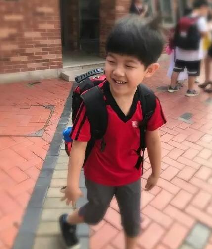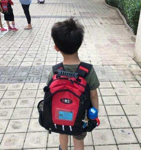 安吉的小书包也非常抢镜,小小的肩膀上备着个大大的书包,很是可爱。远处的同学也和安吉是同款,看来是学校标配的书包了。