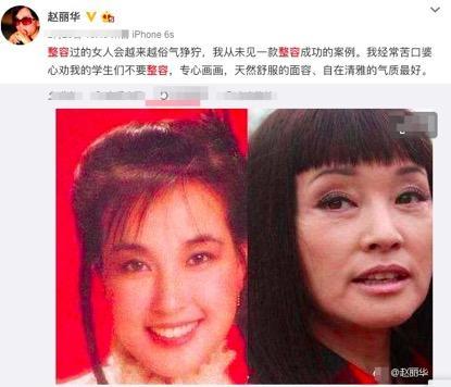 2月25日,诗人赵丽华在个人社交平台发文劝网友不要整容,并直言整容过的女人气质会越来越狰狞,并附上了两张刘晓庆的照片,疑似暗讽刘晓庆整容。有不少网友赞同其观点,一时间,网络上讨伐刘晓庆整容的声音居高不下。