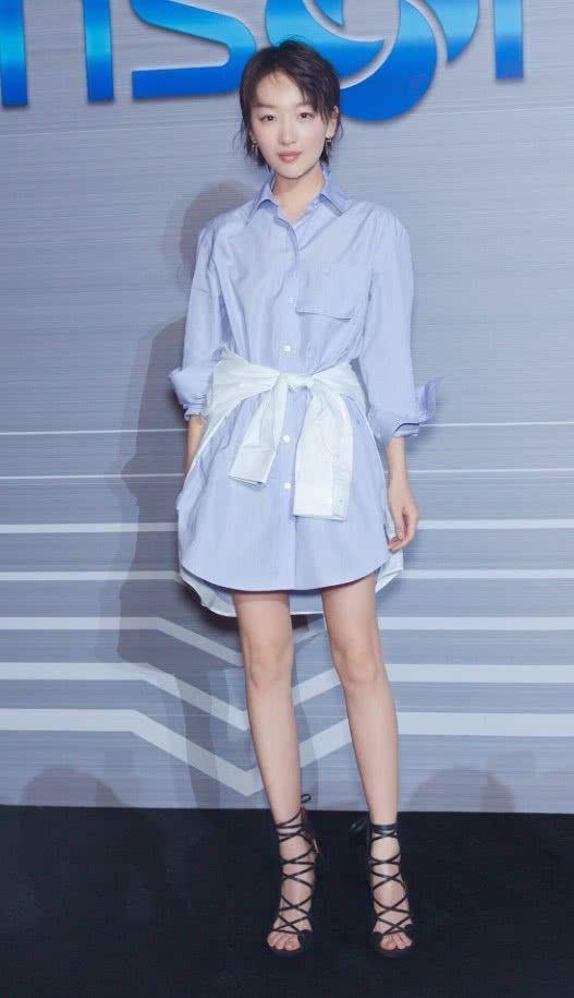 同样是很显腿长的一双鞋子,周冬雨这次的鞋子是吊带的设计,也是将她的脚背和小腿连接在一起来显腿长,同时周冬雨穿着的衬衫腰线被她凸显了出来,看着身材比例很优越,一双腿更加修长!