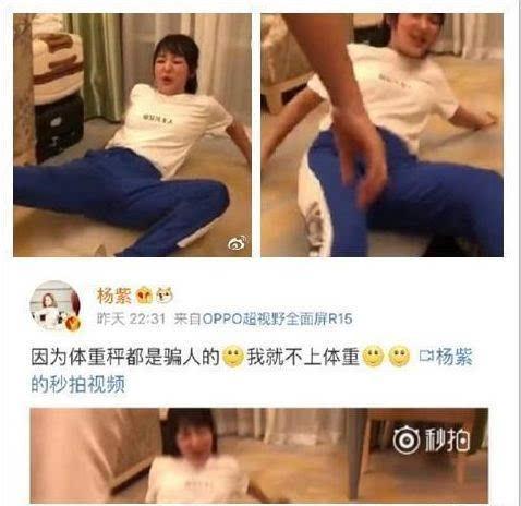 而杨紫死活都不上,用尽吃奶的力气拒绝了她,还说:体重秤都是骗人的,我就不上体重!看她这身材,至少有110斤了。