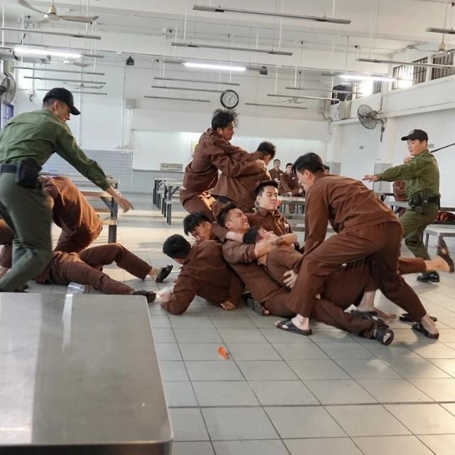 在众多动作场面中,在饭堂和厨房两场混战的殴斗最为激烈,十多名犯人包括古天乐、林峯、林家栋、张建声等,林峯的鼻子更不幸中了一拳,需要上粉才能连戏继续拍摄,“当时场面十分混乱,十几人一齐打,拳头飞嚟飞去,甩拖鞋打断汤羹,有时会避唔切,唔好彩就中咗一拳!”但林峯也十分敬业地指如此激烈的场面在开工初期拍摄,能令他更容易投入角色,使他的角色能演得更放!