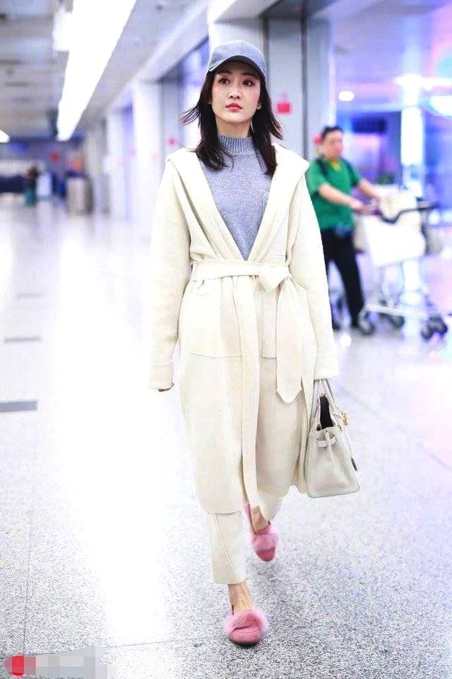 这一套的衣服被王鸥穿出了睡袍的感觉,她里面搭配着一件蓝色的针织衫,外面则罩着一件,米黄色的呢子大衣,这是非常宽松的,她只在腰上用腰带一扎,给人一种非常慵懒的感觉。当然她脚上的那一双红色的毛球鞋子才是这一生的焦点。