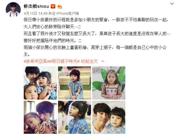 有两个如此可爱漂亮的女儿最幸福的就是爸爸了,同时爸爸也会发愁女儿太快长大了,舍不得女儿长大,所以一有时间修杰楷就会陪伴两个女儿身旁,陪伴女儿的身边的爸爸傲娇幸福,父女相处的画面特别温馨。
