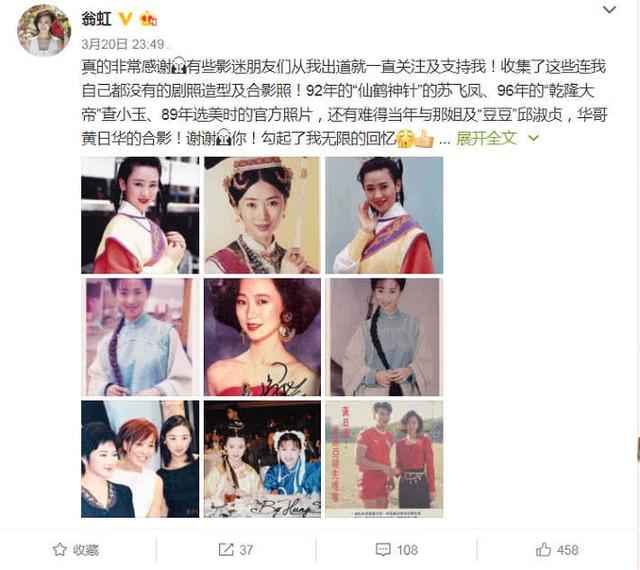 近日,翁虹也在自己的微博中晒出一组照片,这组照片都是她以前塑造过的角色,并且她也写道,很感谢影迷朋友的支持和关注,也没想到大家有一直有收集这些照片,这是很珍贵的回忆,她自己都没有没想到粉丝却收藏了那么久,很感动粉丝的这个行为。