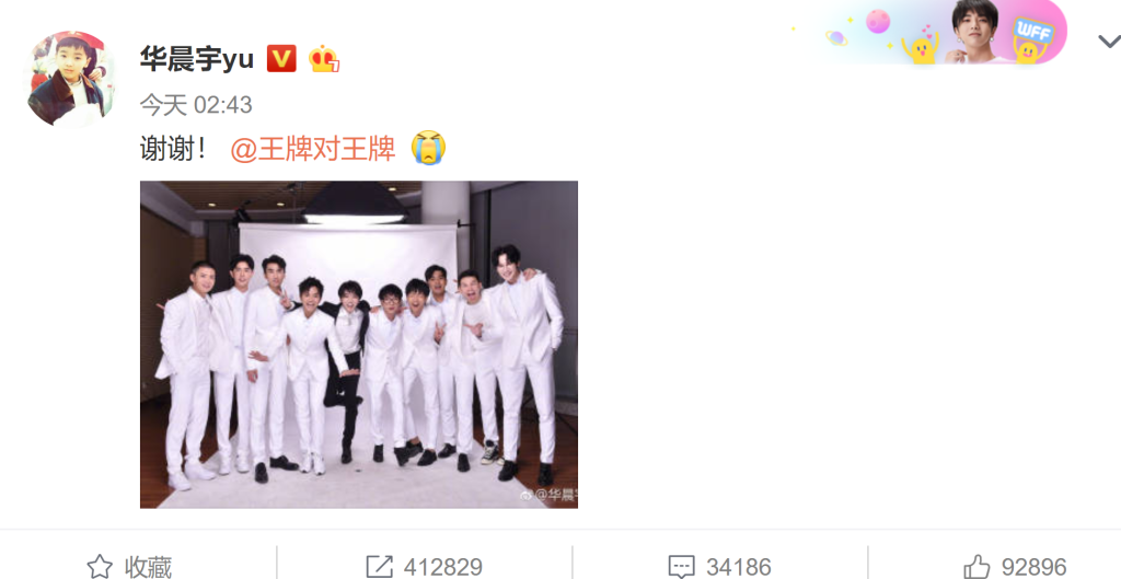 3月24日,华晨宇在微博晒出13届快男重聚的合照,合影中华晨宇毫无疑问的站在了C位,照片中有华晨宇、于朦胧、左立、张阳阳等10位快乐男声出镜,除了华晨宇以外,其他9位快乐男生都穿着白色的西服套装,看起来帅气十足。