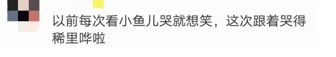 有网友看完这段视频后还发出了这样的感叹:“以前每次看小鱼儿哭就想笑,这次跟着哭得稀里哗啦”哈哈哈哈哈...虽然氛围很悲伤,但这名网友,你太秀了,神总结啊!