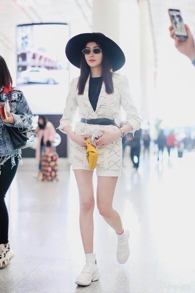 下身穿了一条白色超短裤,搭配同颜色运动鞋,裤子的长度刚好遮住大腿根部,远远看上去就好像没穿裤子一样,不得不说,张天爱是真敢穿,把西装穿成了大衣不说,还玩了把“下衣失踪”,穿这么短的裤子,大腿没有一点赘肉,筷子腿真是名不虚传。还有这腿,也太细了吧,怪不得别人都说这次是“腿精”呢!