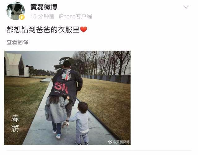 黄磊的内心自然也是很欣慰,不过从宣布三胎很长一段时间内,黄磊都没有晒出过有关儿子的照片,3月26日晚,黄磊晒出一张他和妹妹以及儿子的合照,并配文;都想钻到爸爸的衣服里!只见照片中黄磊在前面跑着,妹妹把身体藏进黄磊的外套里,紧跟在后面的儿子伸出小手也想要钻进爸爸的外套里。