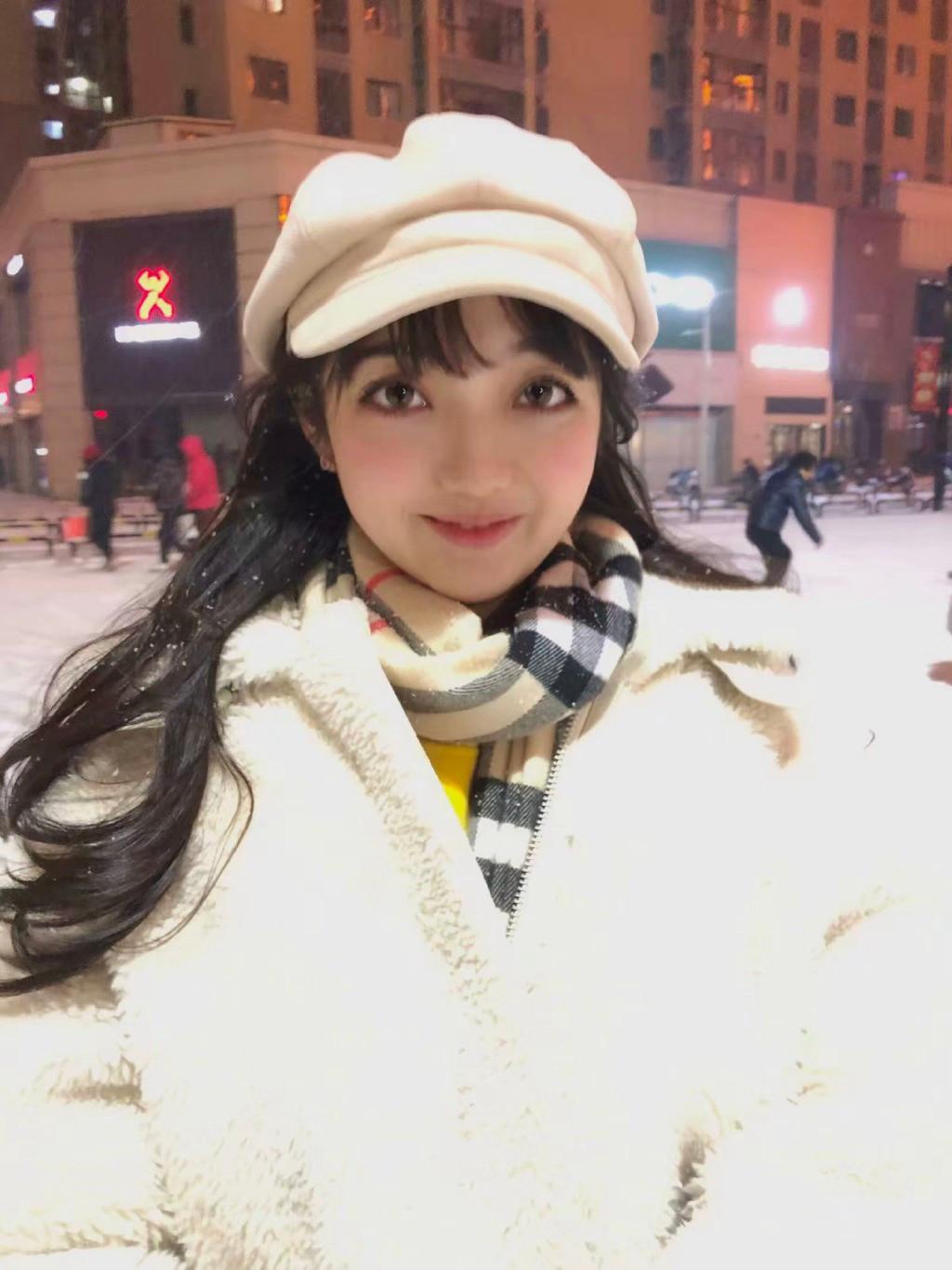 张兆艺戴着一顶白色的贝雷帽,留着一头乌黑的长发,让她看起来明艳动人,气质很出众,裹着格纹围巾,穿着一件白色外套,让她看起来很可爱,而且这样的穿搭在冬季是很时尚的,为你御寒的同时也会让你看起来很可爱,当然现在虽然穿不了,但是各位小姐姐在下个冬季可以尝试一下这样的穿搭哦!