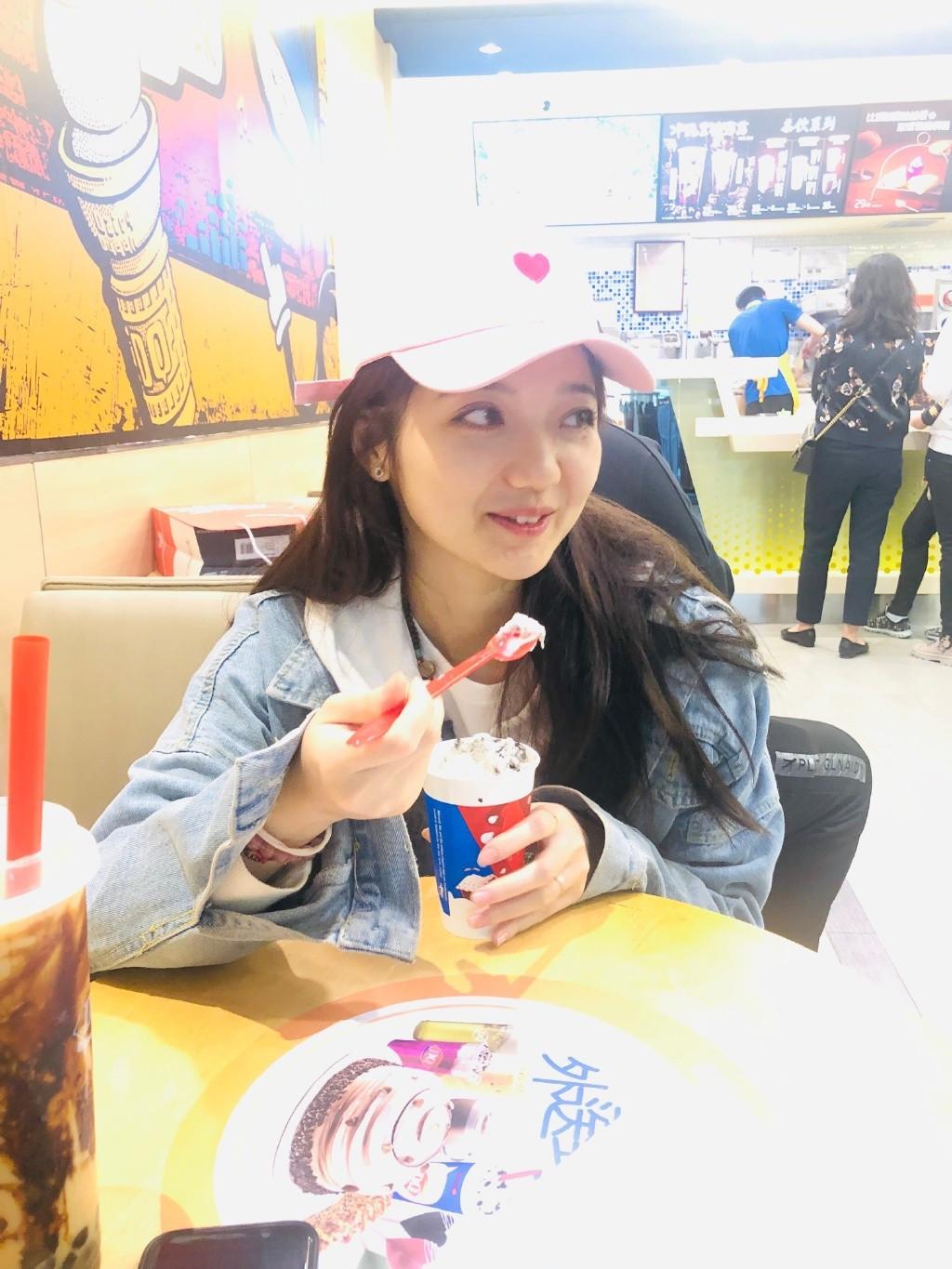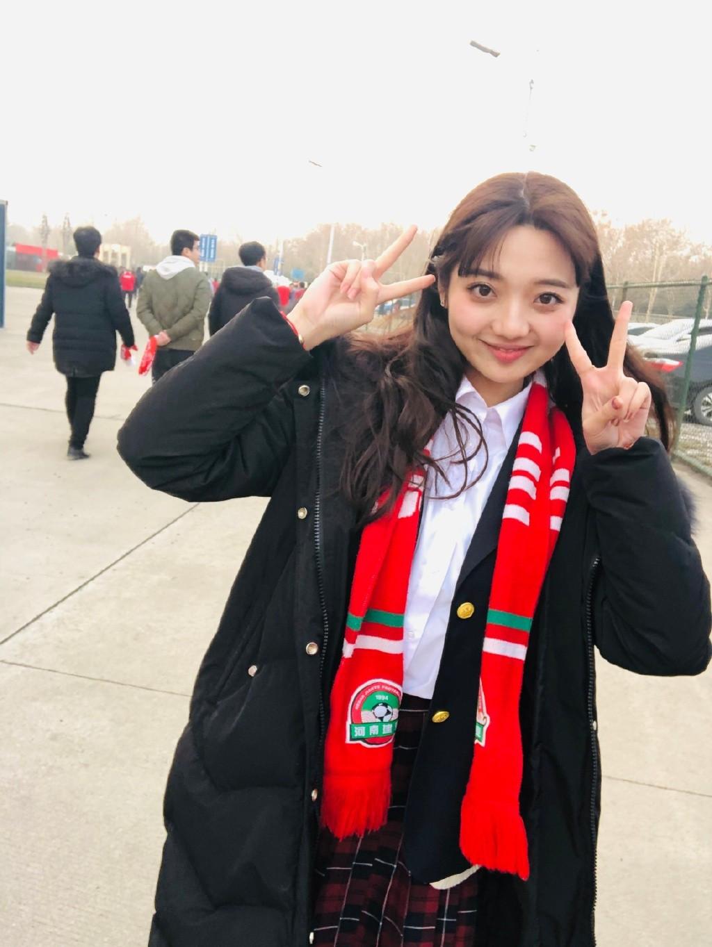 可以看到张兆艺戴着一顶白色的棒球帽,在上面还点缀着一颗爱心,看起来就很少女,穿着一件白色的卫衣,搭配了一件蓝色的牛仔外套,用了很流行的叠穿搭配,让她看起来非常的少女,加上她肉乎乎的娃娃脸,让她看起来真的是很可爱了。