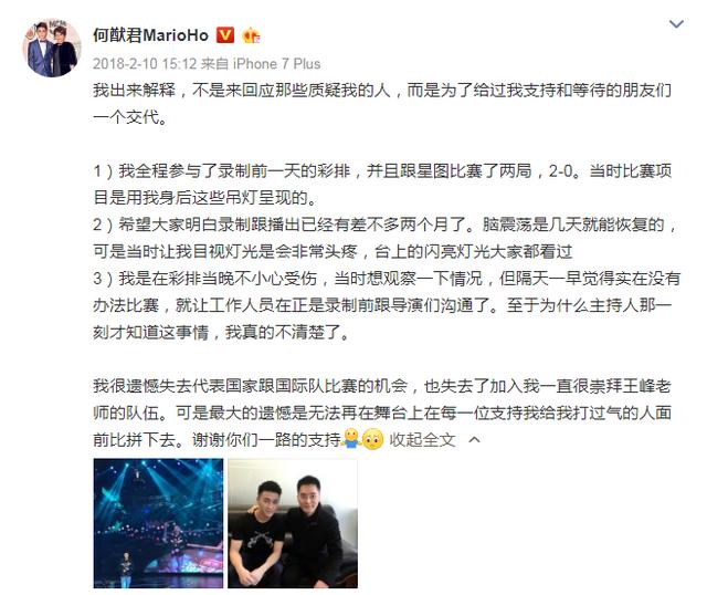 最后,我们再来说说何猷君的退赛。当何猷君拿了“数字华容道”和“层叠消融”两个项目第一的时候,网上曾有谣言何猷君花了500万内定了《最强大脑》的冠军。当时此事颇受争议,我们暂且不说这事到底是不是真的,因为我们都没有证据。但是,当这样的谣言出来后,何猷君却马上中途“因伤退赛”,不免让人更加怀疑他的实力。当时,何猷君退赛的理由是彩排当晚在浴室不小心摔跤,而且竟然还严重到了脑震荡,完全不能比赛的地步。这样的巧合,又有几个人愿意相信呢?