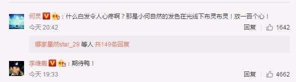 只能说,何老师立马辟谣的反应也很是可爱啦,不过如果真的长满白发,作为公众人物的他应该也会去染个发色吧,毕竟谁不想让自己看起来年轻点呢。