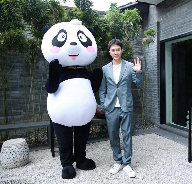 在这一身休闲的西装下,当冯绍峰和卡通的熊猫人物拍照时,举起的手掌也是平添了一份可爱和随性。虽然这款西装比起前面的米色,看起来更显宽松,但是作为178大高个的冯绍峰,这魁梧的身材也是完美HOLD住了,这帅起来也是完全不输“小鲜肉”的酷帅感嘛。