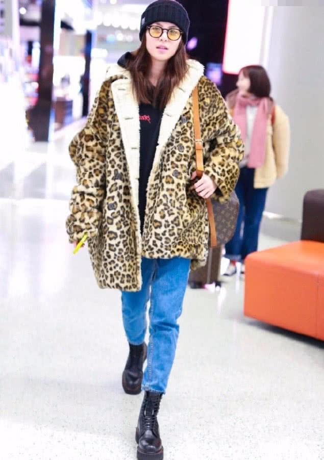 钟楚曦平时的私服穿搭还是很酷的,走的就是酷girl的路线。她身穿一款黑色的卫衣打底,外搭一款豹纹大衣,搭配的是一款牛仔长裤,脚踩一双黑色的短靴,再戴上一顶黑色的针织帽,真是气场全开。
