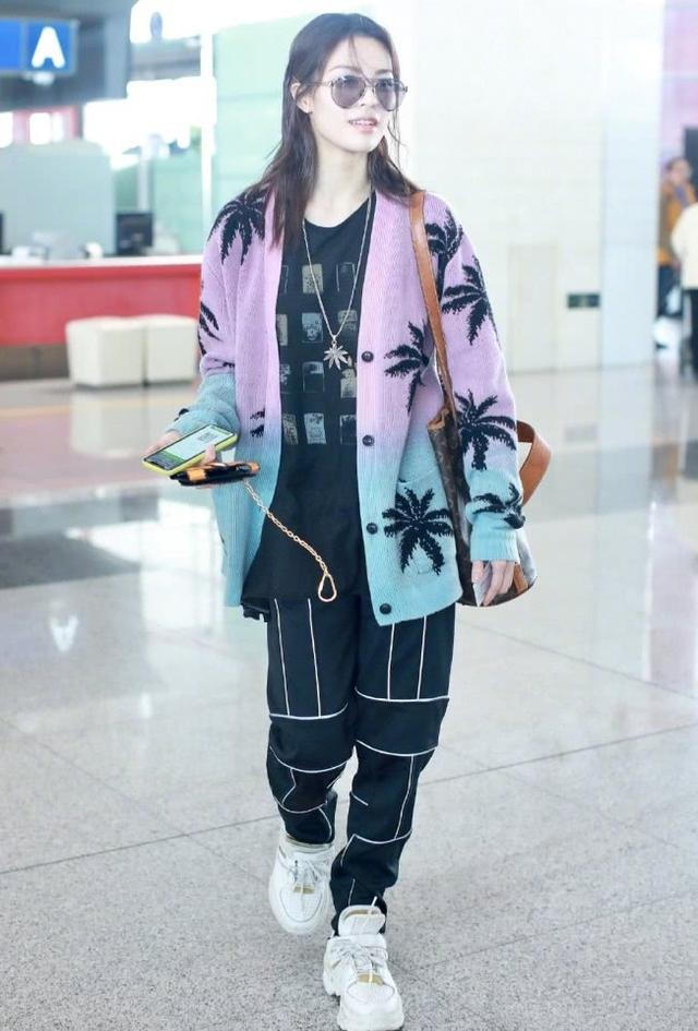 钟楚曦身穿一款黑色的T恤,外搭一款撞色开衫毛衣,搭配一款黑色的休闲裤,脚踩一双白色的运动鞋,真的是休闲又有范,是一个很会穿很有个性和风格的小姐姐了。