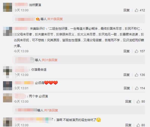 经历两段婚姻的袁立终于找到了自己的幸福,网友对这次袁立的询问也给出了意见“46岁的她不管是年龄和气质都符合宋庆龄这一历史角色。”“演当然要演,而且你们的信仰相同!”可也有不同的声音,有网友则表示“我觉得许晴演的比你大气些...”