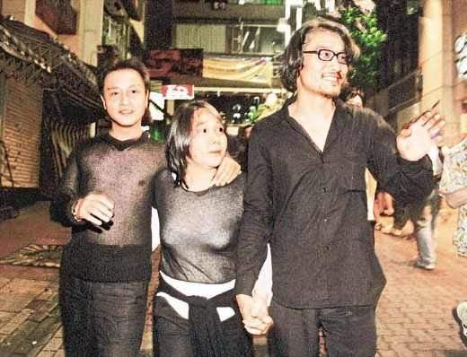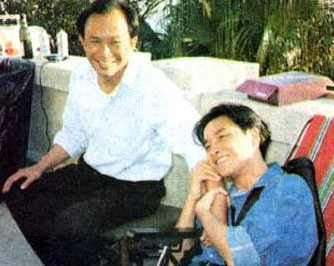张国荣与吴宇森的惬意合照,吴宇森与张国荣感情甚笃,张国荣始终称吴宇森夫妻为“师父、师母”,吴宇森说:“《英雄本色》前吴宇森很穷,借了不少钱,赚的导演费多拿去还债,张国荣每次见到他都问要不要帮忙!