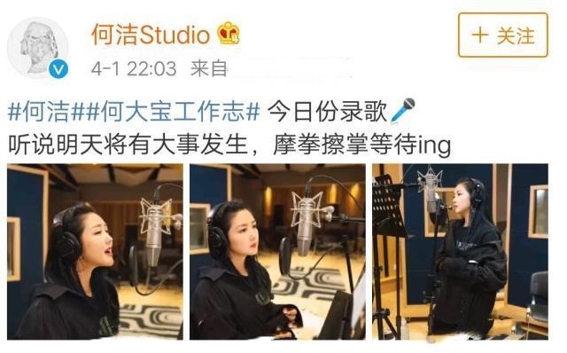 从去年开始,何洁便将生活重心重新转移到了音乐上,之后推开了无数工作上的邀约,全心全意制作自己的新专辑。而就在4月1日,何洁晒出了自己的工作照,并配文自己正在紧张的录歌中,并说近日可能会有大事发生,可能是自己的新专辑马上要完工了吧。据悉,这也是何洁承认与刁磊生三胎后的首次公开露面。