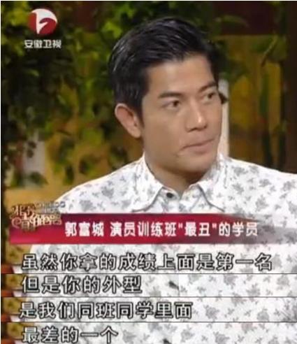 郭富城表示:“我训练班的时候是拿第一名的,毕业之后,我们拿成绩表,我们的老师跟我说”你不要得意,虽然你成绩上是第一名,但你的外型,是我们同班同学里,最差的一个“。