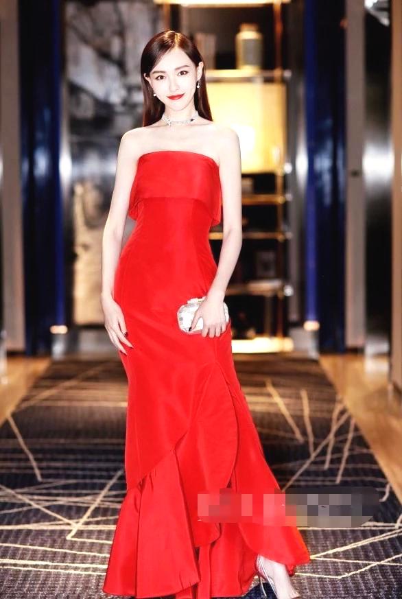 唐嫣身穿一席抹胸长裙,大秀性感,修身的设计尽显唐嫣曼妙身姿,鱼尾的裙摆也彰显气质呀,这样艳丽的红色也很好的凸显了唐嫣白皙的肌肤,不知道这样的唐嫣你们喜欢吗?