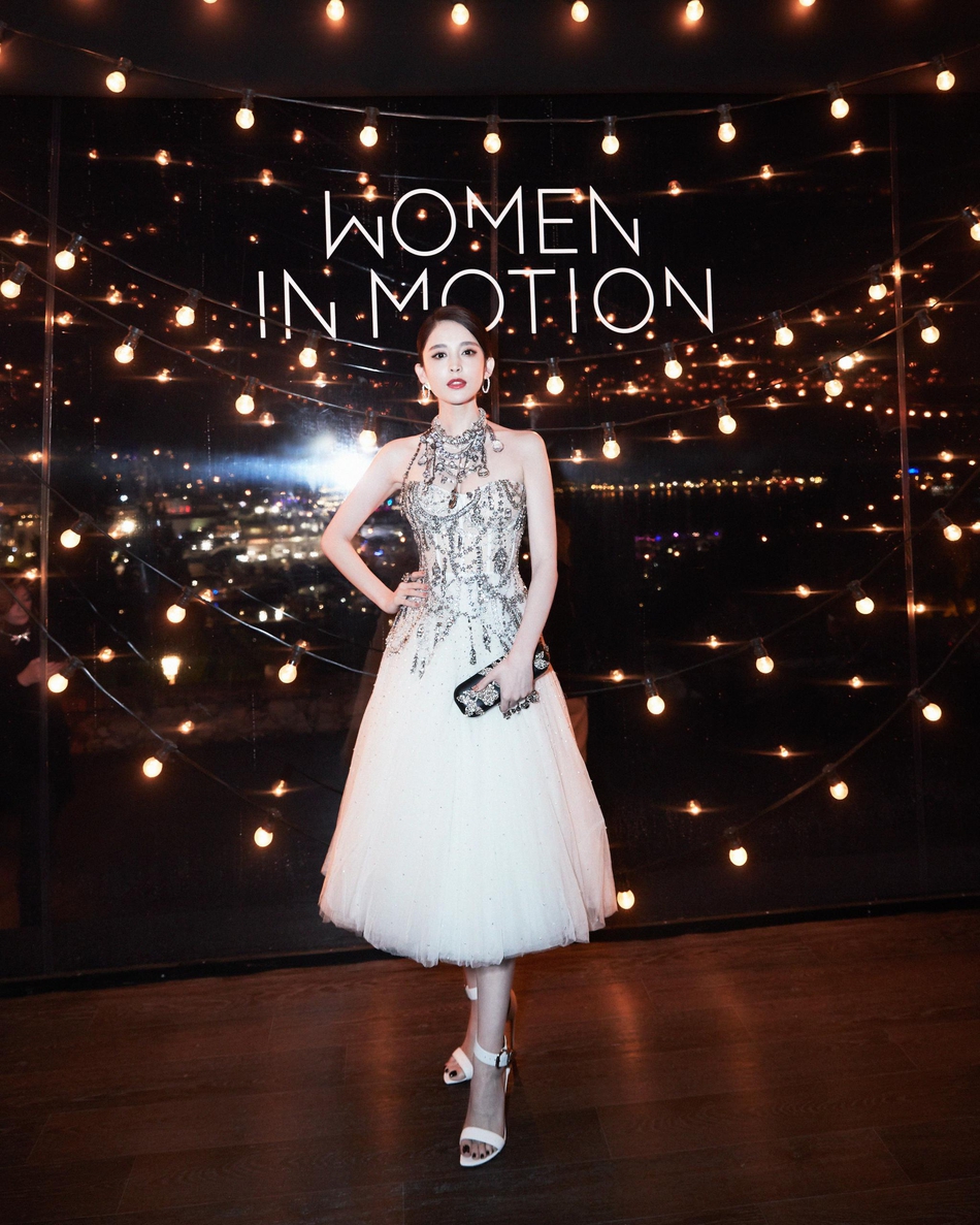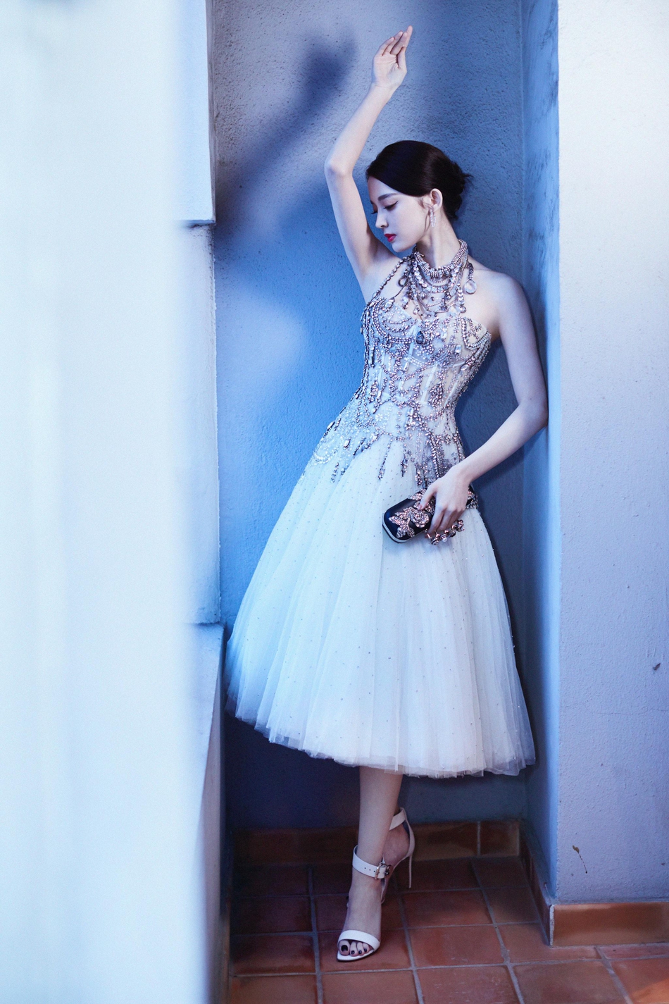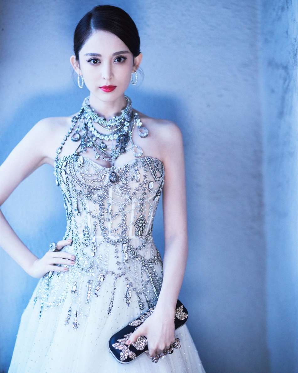 5月20日,娜扎一天两套礼服亮相戛纳电影节活动。身穿黑刺绣玫瑰裙红毯亮相之后,她又受品牌邀约着水晶天鹅裙出席晚宴。