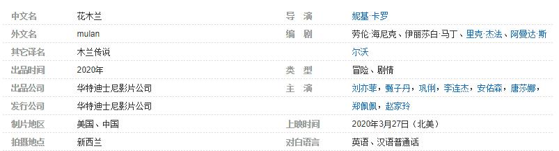早在1998年,迪士尼就将花木兰的故事制作成动画片,受到观众的追捧。此次开拍电影真人版,也算是翻拍自动画片《花木兰》。巩俐透露电影版《花木兰》总投资超3亿美元,是迪士尼投资最大的电影之一。