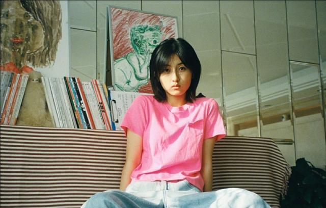 穿着简单的粉色纯棉体恤,圆领体恤设计非常简单,没有任何装饰,很有少女的韵味,再搭配一条浅蓝色的宽松牛仔裤,加上这头黑色的利落短发,真的很有港风味道啊!