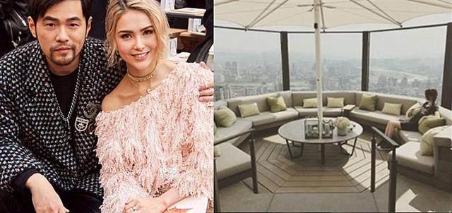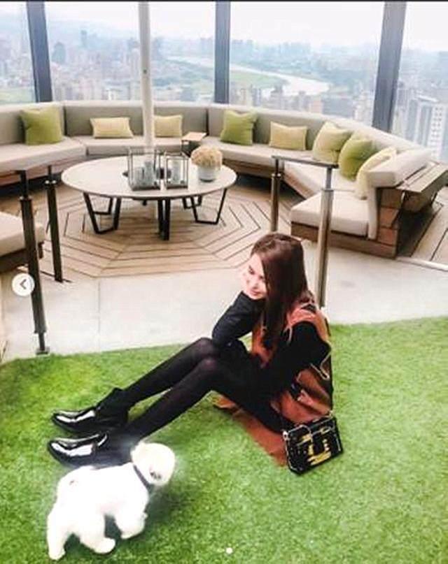 周董太太昆凌曾多次在ins上晒出这个角度的照片,从中可以窥探豪宅内部装修一二,柔软舒适的植绒真皮沙发,咖啡色金属质感的地板,而室内还有一块大草坪,昆凌就坐着绿色草坪上合影过,客厅和卧室都是采用全落地窗的设计,可以看到整个台北市的夜景。