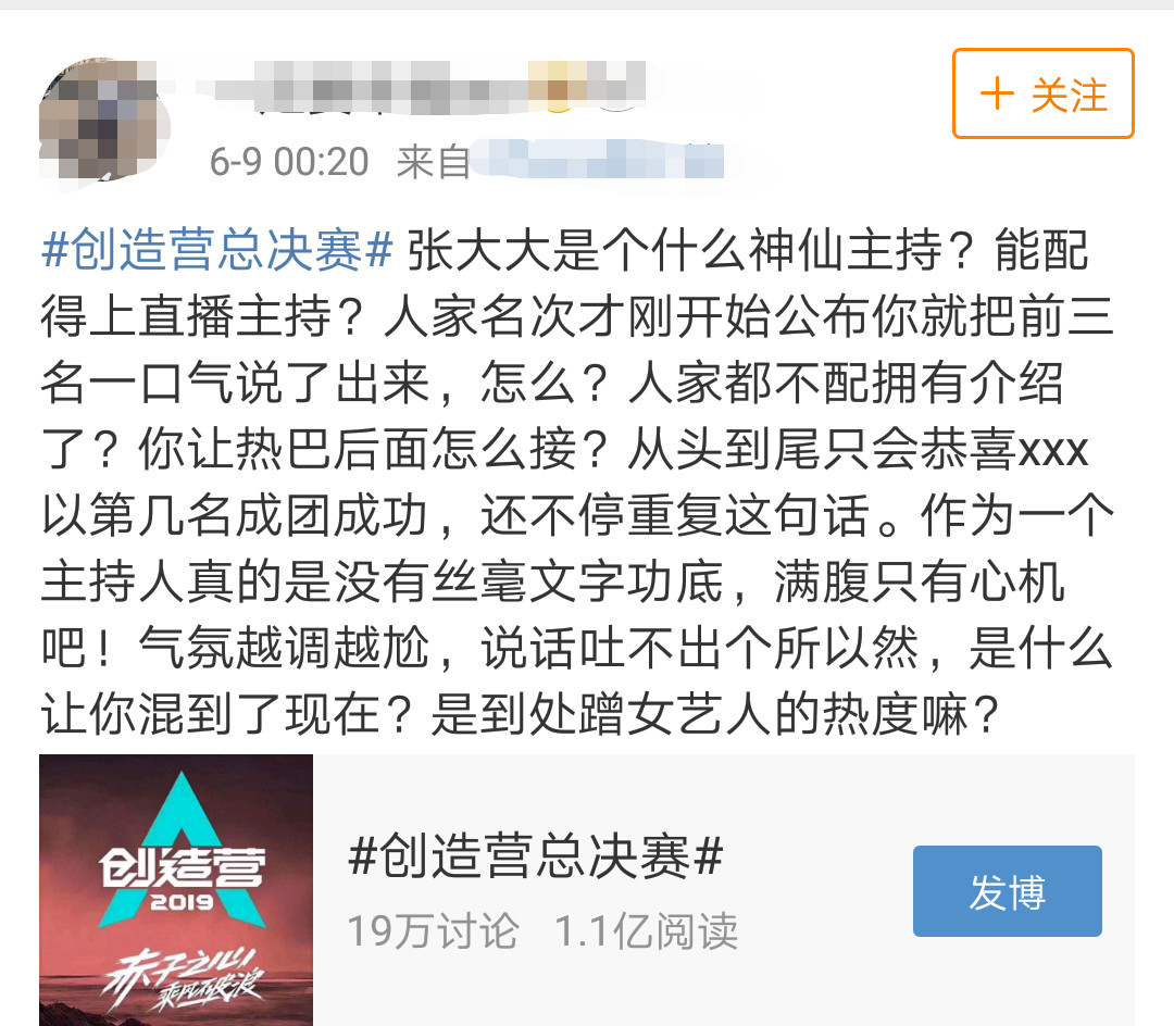 迷姐坚守到半夜,除了为未成团的男孩遗憾之外,也为两位主持人的表现失望,和去年的侯佩岑与黄渤搭档相比,简直相差太远,侯佩岑今年的串场主持人从一出场的打招呼到公布男团名单都能秒杀热巴,语气、台风、整场的控制力,就连语句间的转换都步步踩点,甩了热巴不不止几条街。当然这样比不公平,毕竟热巴不是主持人,那么和张大大比呢?