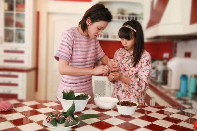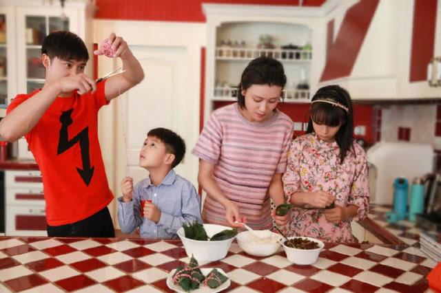 照片中快要11岁的森碟个子长高了很多,眼看已经超过了妈妈的肩膀。到了端午节,全家都聚到一起包粽子:看起来他们是分工合作,男士们负责用线包住粽子,而女士们负责将米和馅塞进粽叶,而一旁的森碟静静地包着粽子的模样真的很认真,而且看来包得真的很不错呢!