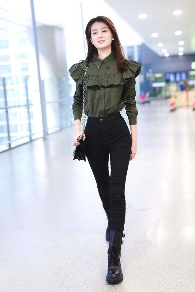 乔欣确实是瘦了很多,下身穿着这么紧身的牛仔裤居然还能塞进衣服,可见她的腰有多瘦了吧!乔欣这一身穿搭其实是相对比较简约的,也很很有休闲范儿,脚下踩着一双帅气的马丁靴,看起来酷酷的,一改过去乖乖女的形象。