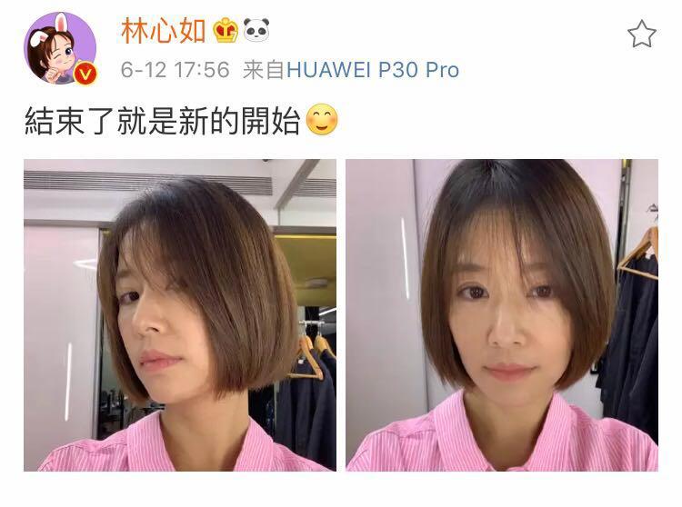 6月12日,林心如在社交网站上晒出了自拍照,并且配文:“结束了就是新的开始”。