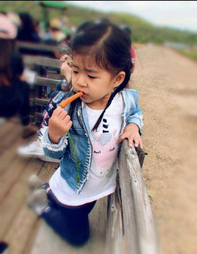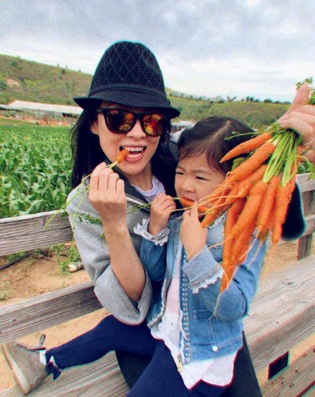 章子怡带女儿体验生活,醒醒越来越好看,生吃胡萝卜表情很精彩