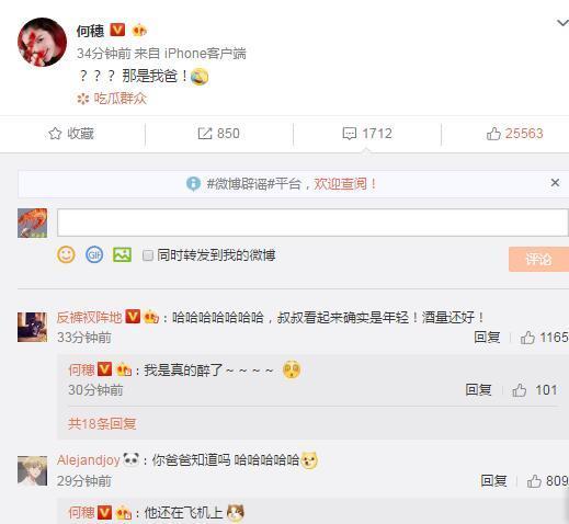 然而刚上热搜没多久,何穗本人就亲自发声否认新恋情了,她在微博上连发3个问号,随后表示:“那是我爸!”更是在评论区与网友互动:“我是真的醉了”!不得不说何穗的回应很及时也让这段“所谓的新恋情胎死腹中”。