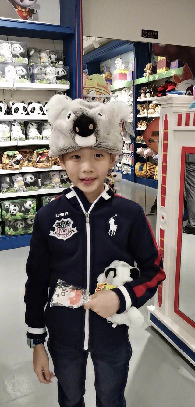 不得不说,杨阳洋现在真的变成一个小男子汉了呢,他穿着一身藏青色的运动服套装,衣服上面由白色和红色的条纹拼接而成,充满了时尚感。而杨阳洋头上还戴着一个浣熊帽,简直是可爱男孩了~