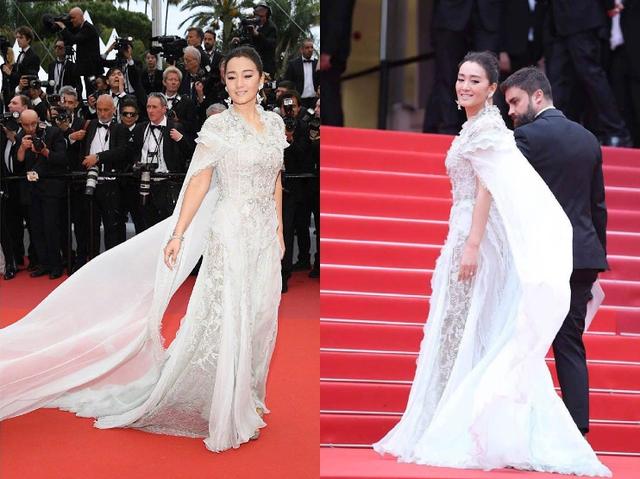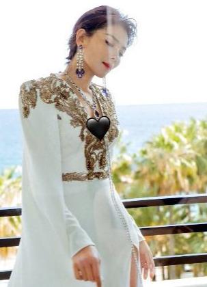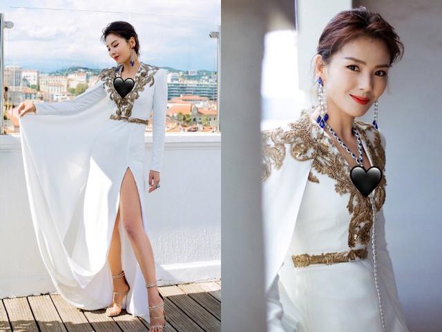 刘涛首战戛纳国风高定刺绣礼服秀美腿比巩俐闪耀,120斤身材好美