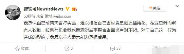 不管怎么样,希望通过曾轶可这一件事情,我们每一个人在外面都需要懂法守法。出行不易,不管是明星也好普通人也罢,和谐的社会,需要大家一起温柔对待。