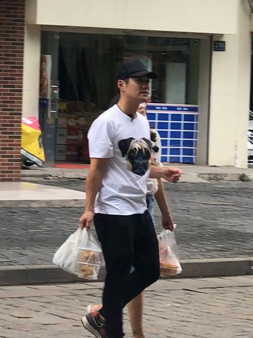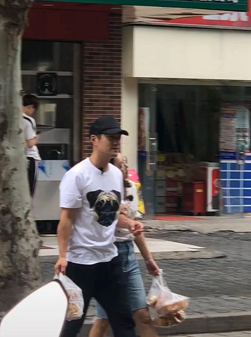 从网友晒出的路透照来看,严屹宽也是和妻子杜若溪外出买吃的,照片中严屹宽头戴黑色鸭舌帽,身着白色卡通图案T恤搭配黑色长裤,脚踩休闲鞋,一手拎着打包好的饭菜,一手拉着一旁老婆杜若溪的胳膊,而再看一旁杜若溪的装扮,相比老公看起来要更随性,和老公一样素颜出镜的杜若溪身着白色短袖衬衫搭配牛仔短裤,脚踩拖鞋,左手拎着两小袋糕点,外出购物的夫妻两个也是满载而归。