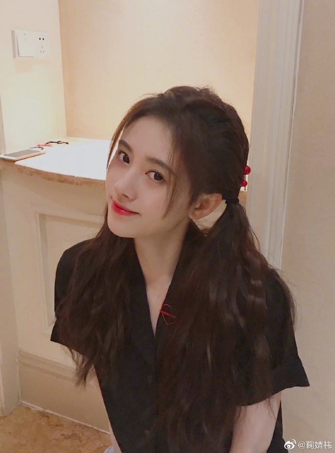 鞠婧祎分享库存晒美图 扎双马尾辫元气满满