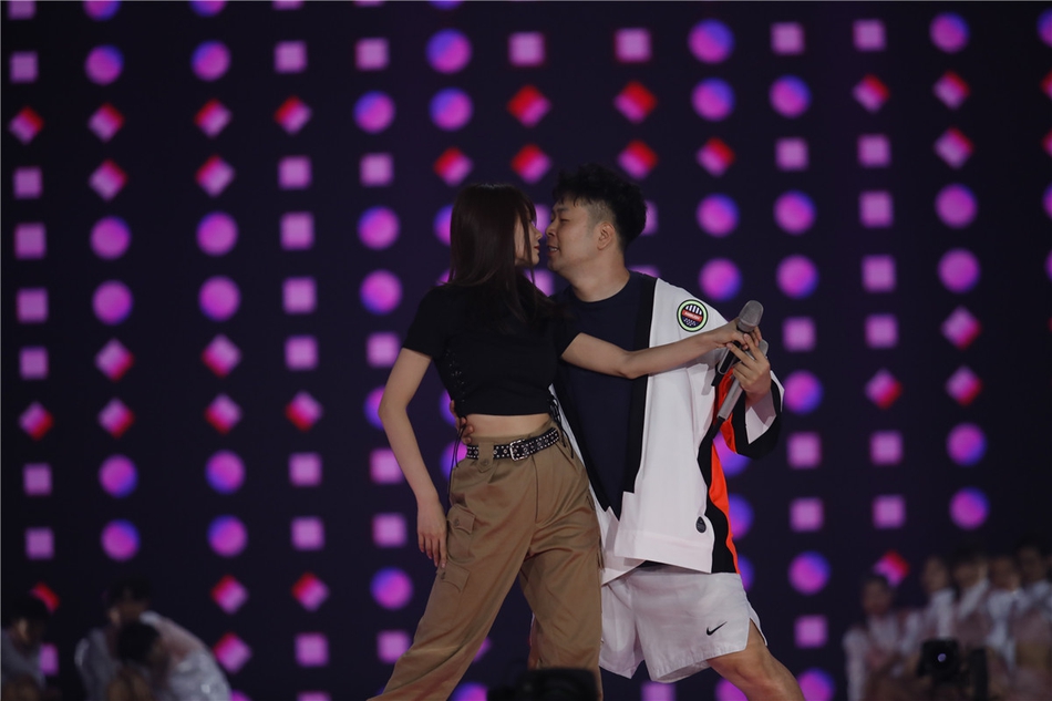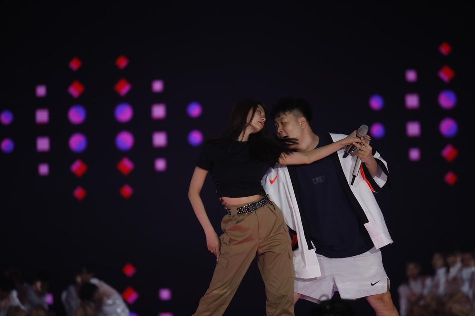 沈梦辰露脐装搭配杜海涛嘻哈风,两人贴身热舞火力全开,杜海涛试图索吻,沈梦辰害羞转头躲开,现场撒狗粮甜度爆表。