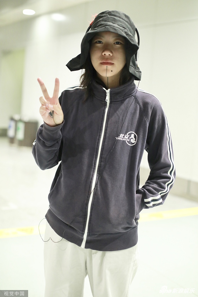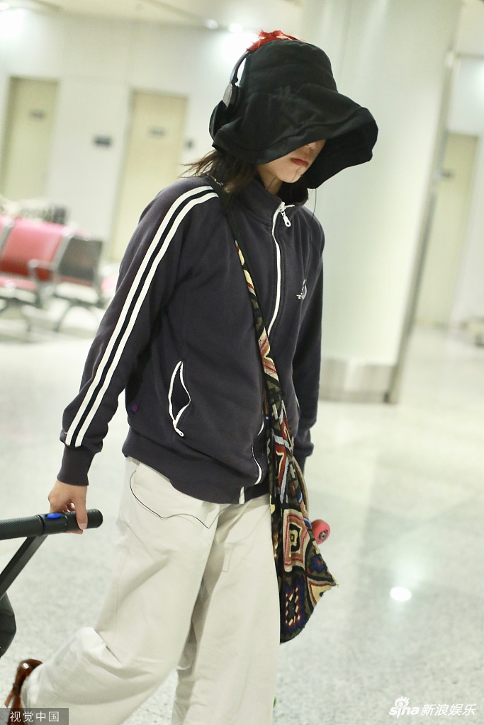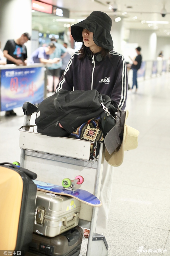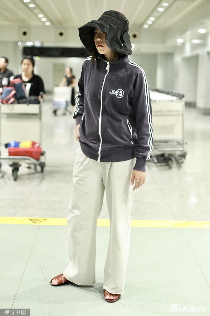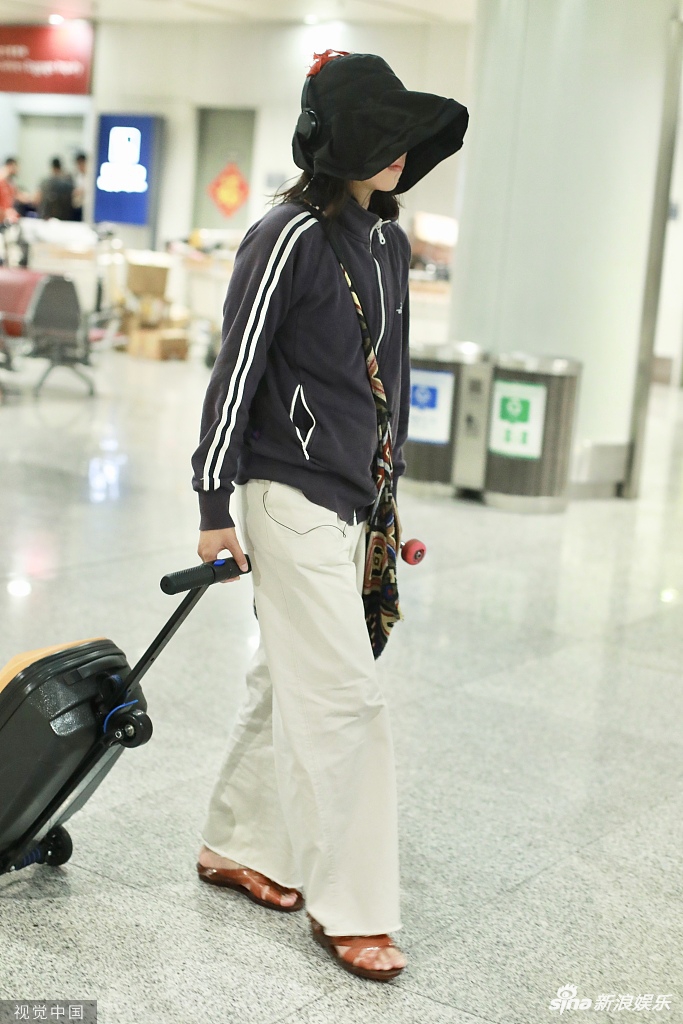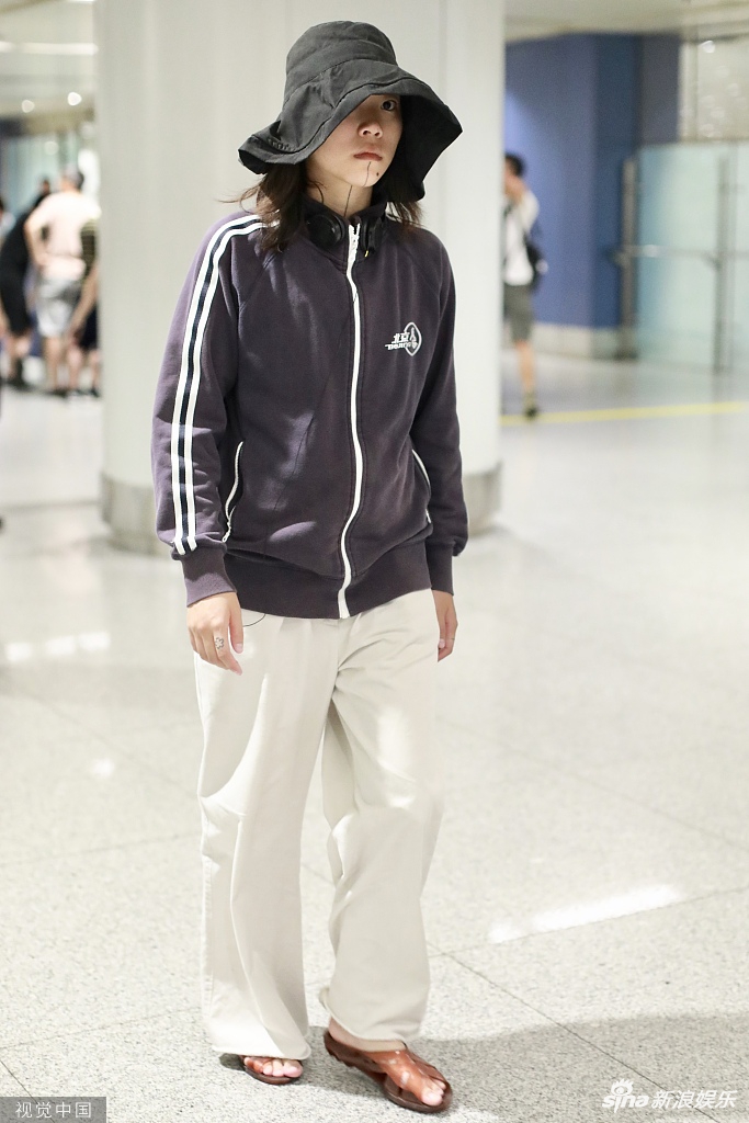7月25日,王菲之女窦靖童一身运动风造型现身机场。窦靖童头戴宽大渔夫帽外戴耳机,身穿运动罩衫脚踩凉鞋。面对镜头,窦靖童左手插兜右手比剪刀手,略显呆萌。